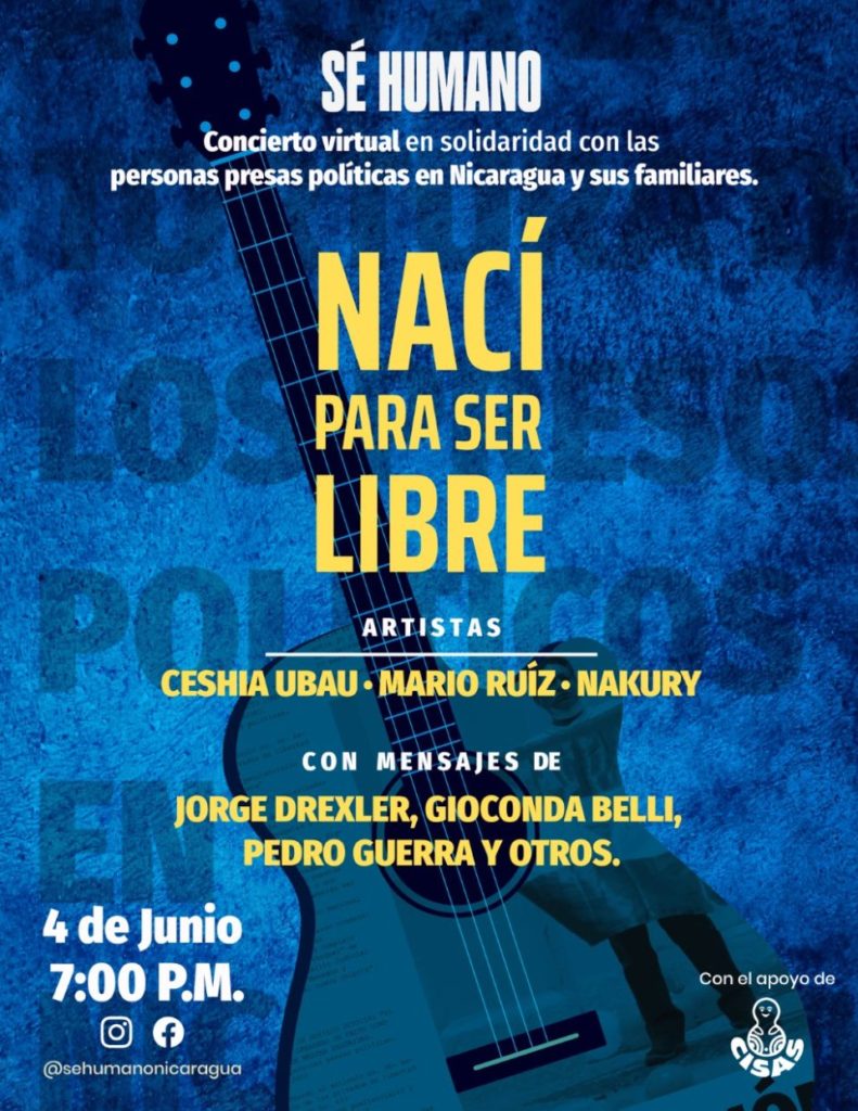 El concierto que se transmitirá por la plataforma de Facebook de SÉ HUMANO, pretende amplificar la demanda de libertad para las más de 180 personas presas políticas del régimen de Daniel Ortega.