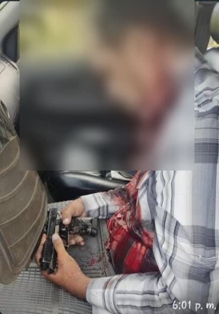 Número 4: La pistola que porta Baltodano está con el carrete hacia atrás, lo que solo puede explicarse por dos razones, una, que la pistola solo tenía una bala, y dos, que se encasquilló (enconchó), sin embargo, no se ve ningún proyectil encasquillado que haya evitado que el carrete de la pistola hubiese regresado a su posición normal.