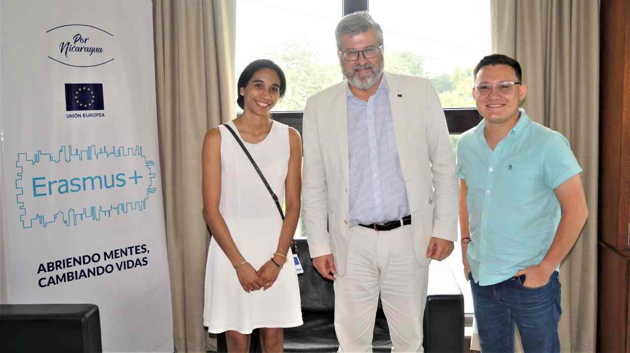 El nuevo embajador de la Unión Europea (UE) en Nicaragua, Fernando Ponz Cantó, se reunió con los dos becarios que todavía están en el país y que en los próximos días viajarán a Europa llevando una maleta llena de metas y sueños.