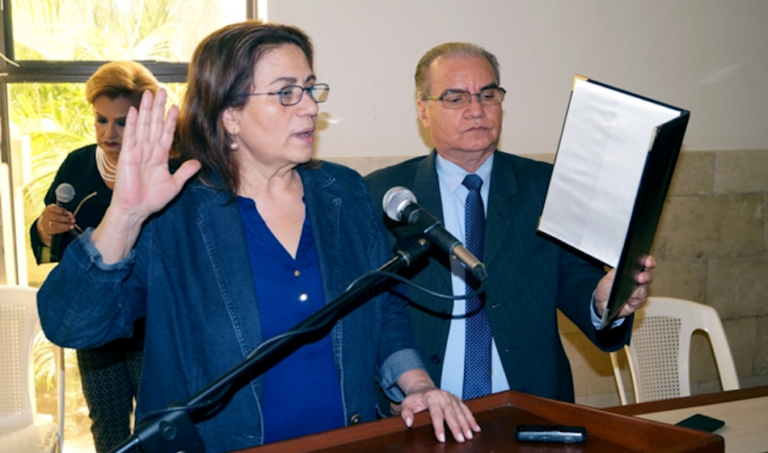 La magistrada de la Corte Suprema de Justicia de Nicaragua, Juana Méndez, durante una juramentación de testigos de licenciados en derecho. Junio, 2022. Foto: Poder Judicial