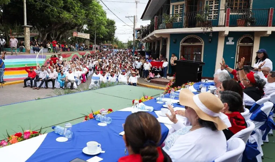 Diputados sandinistas durante un acto partidario en Niquinohomo, Masaya, en ocasión del natalicio de Augusto Sandino. 16 de mayo, 2025.