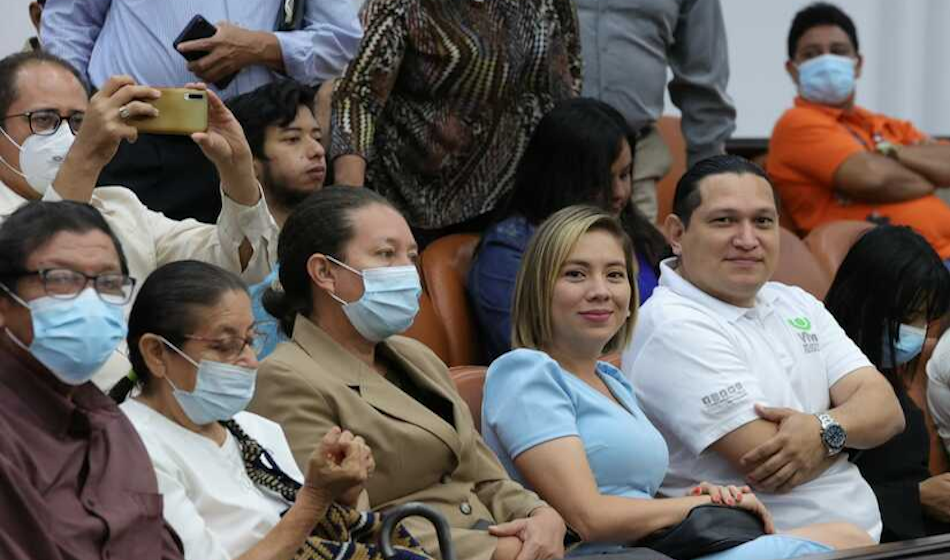 Periodistas oficialistas, varios de ellos afiliados a la Unión de Periodistas de Nicaragua (UPN), durante una sesión especial en la Asamblea Nacional el 3 de marzo de 2019, en ocasión del Día nacional del periodista, conmemorado cada 1 de marzo.