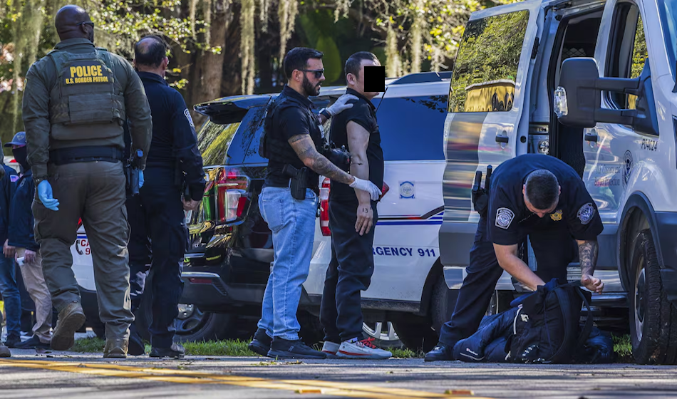 Un presunto migrante irregular es detenido por agentes migratorios de Estados Unidos en Clark Gables, Florida. Enero, 2025. Foto: Cortesía