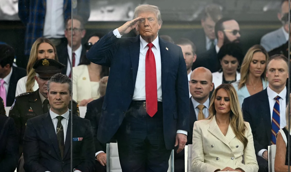 El presidente Donald Trump durante el desfile militar en conmemoración al 250 aniversario de la fundación del Ejército de los Estados Unidos. 14 de junio, 2025. Ese día también era su cumpleaños.