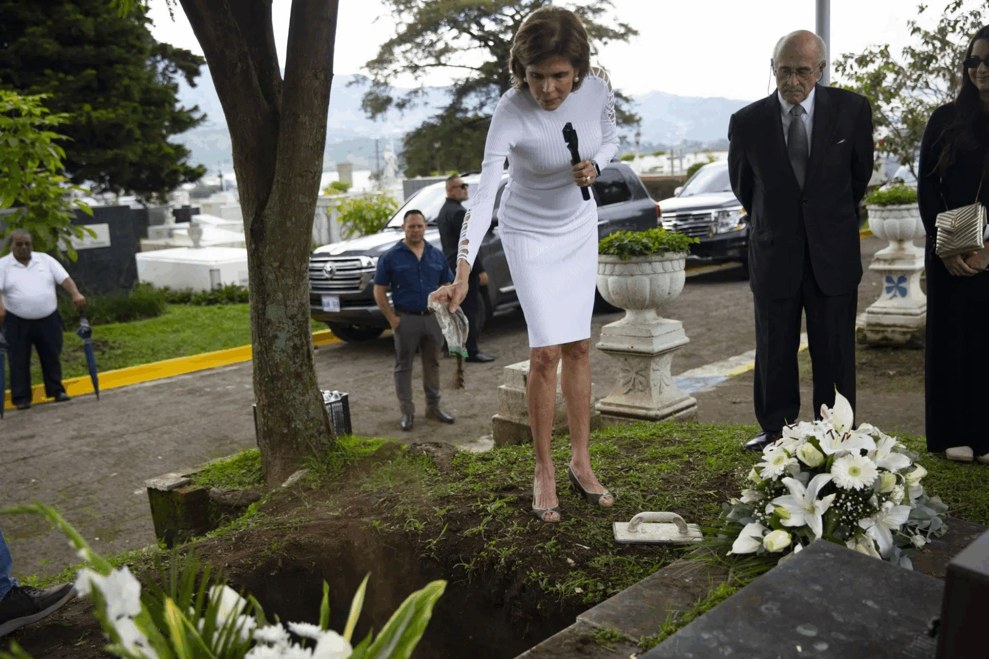 Cristiana Chamorro al momento de inhumarse la urna cineraria con los restos de su madre, Violeta Barrios de Chamorro en el Cementerio General de San José, Costa Rica. 17 de junio, 2025. Foto: República 18
