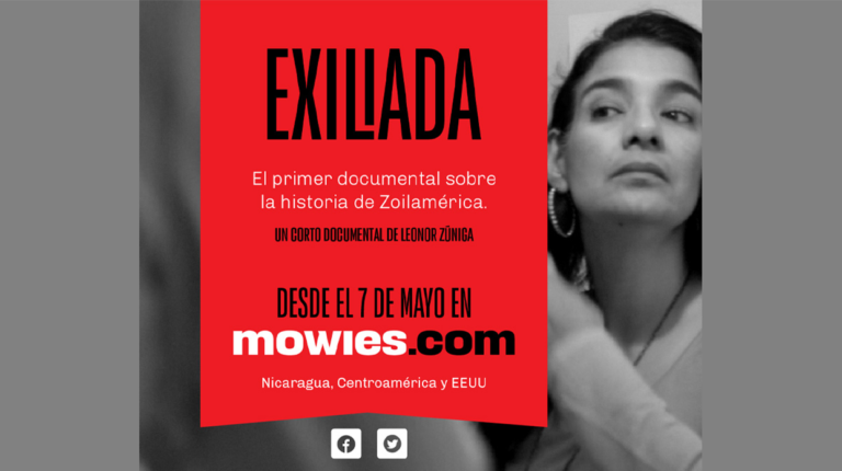 A partir de hoy, 07 de mayo, se podrá ver en Nicaragua el documental “Exiliada” una producción de la cineasta nicaragüense Leonor Zúniga, en la plataforma digital mowies.com, que relata desde una mirada íntima la vida en el exilio de la hijastra de Daniel Ortega, presidente de Nicaragua. “Es importante para mi reiterar que Zoilamérica […]