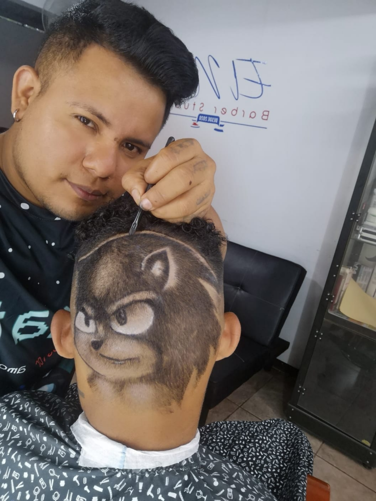 Uno de los trabajos más llamativos de Huembes, representando en el cabello de un cliente al personaje de videojuegos, Sonic El Erizo. Foto: Cortesía