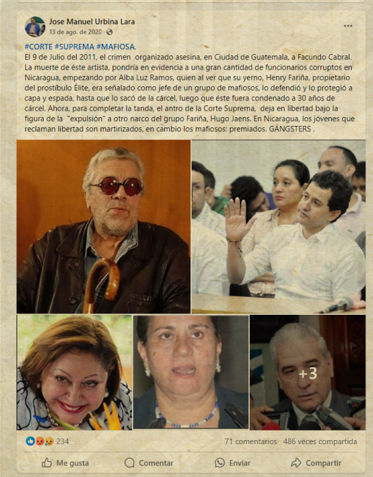 La competencia para conocer el caso se la adjudicó el juez Henry Morales, en Managua, el mismo que años después condenó a varios presos políticos por las protestas de 2018.